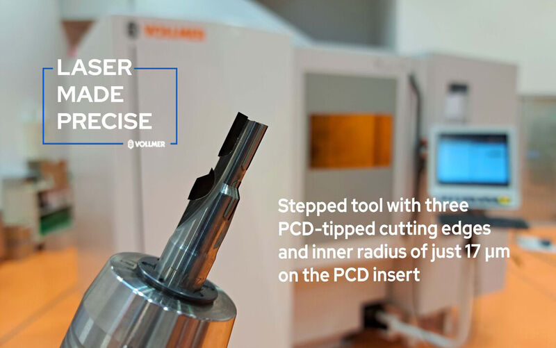Bei der Aluminiumbearbeitung zählt jedes µm. Unsere VLaser 370 hat kürzlich ein Stufenwerkzeug mit drei PKD-Schneiden bearbeitet, inklusive Innenradius von nur 17 µm und definierter Schneidkantenverrundung.